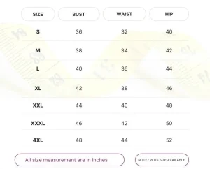 | SIZE | S, M, L, XL, 2XL, 3XL |